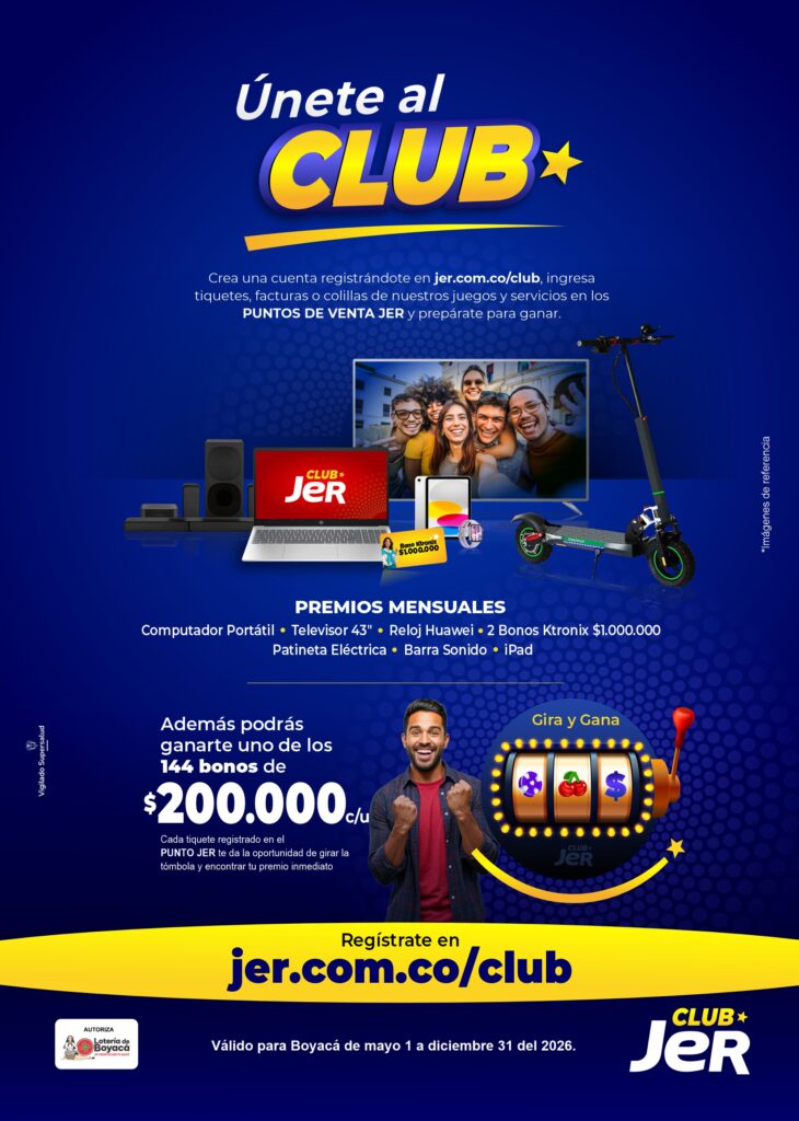 Son los clientes estrella de la RED JER, quienes al crear una cuenta en www.jer.com.co/club, logran su membresía con la cual podrán ganar premios por utilizar los servicios y/o juegos del portafolio en los diferentes puntos de venta.