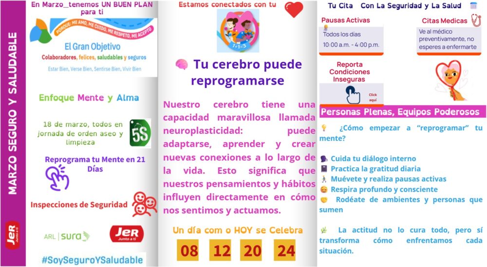 ¡Marzo ya está aquí! 💜✨ Un mes para seguir fortaleciendo nuestra salud física, mental y emocional, y para reconocer el valor de cada persona que hace parte de este gran equipo. Porque cuando nos cuidamos, crecemos juntos 💪🌿.